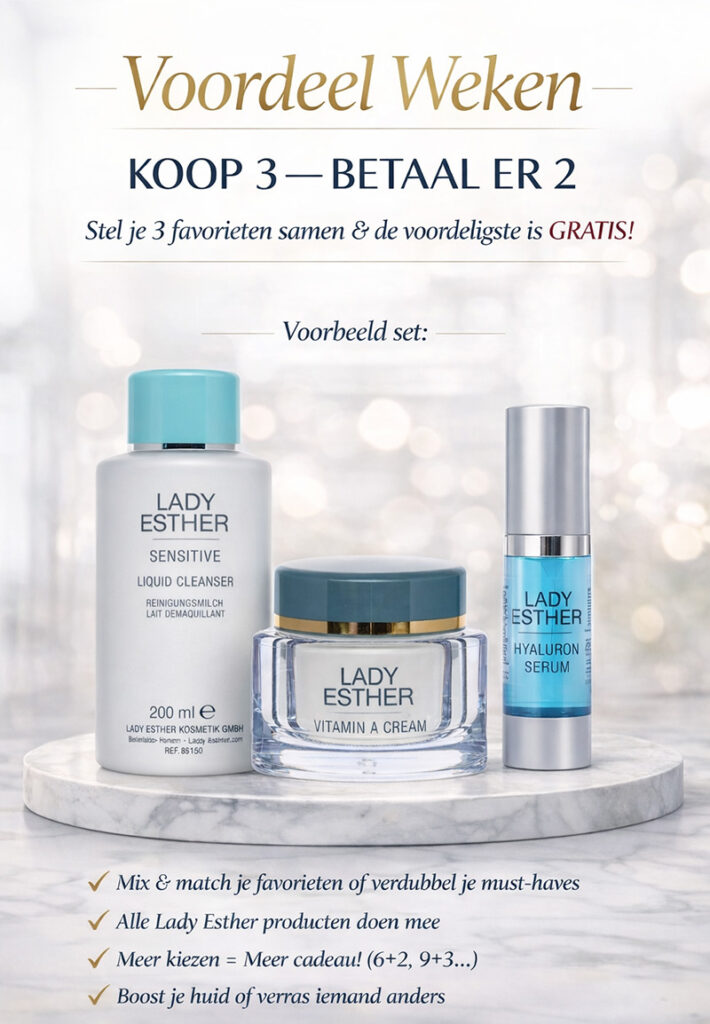 Mix & match je favoriete Lady Esther producten of vul je must-haves aan. Alle producten doen mee, dus dit is hét moment om je routine compleet te maken of iemand te verrassen.